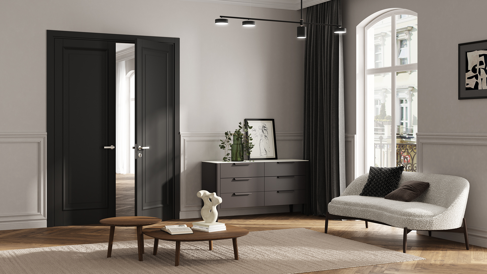 Шарм — выразительная коллекция дверей из массива бука в эмалевых и экстра-матовых древесных отделках. В основе три актуальные формы, приобретающие свою уникальность за счёт нескольких вариантов фрезеровки: рифление и каннелюры. Завершает образ узкий наличник.